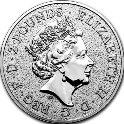 Аверс: портрет Ее Величества королевы Великобритании Елизаветы II. Вдоль канта отчеканена легенда: «ELIZABETH II • D • G • REG • F • D • 2 POUNDS».
