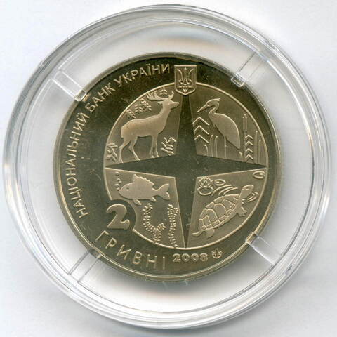 2 гривны 2008 год. Украина. 100 лет Киевскому зоопарку. BrUNC в капсуле