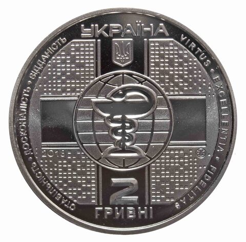 2 гривны. 100 летие Национальной медицинской академии им. П. Л. Шупика. 2018 г.