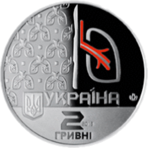 Аверс: на зеркальном фоне стилизованная композиция, символизирующая торакальную хирургию, один из элементов композиции - цветной (использовано тампопечать); внизу: малый Государственный Герб Украины, надпись УКРАИНА; под ними: номинал - 2/ГРИВНЫ и год чеканки монеты - 2018; логотип Банкнотно-монетного двора Национального банка Украины (справа).
