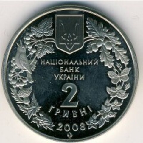 Аверс монеты содержит изображение в виде венка некоторых видов флоры и фауны Украины, вверху монеты выгравирован малый герб Украины, в центре надпись “Національний банк України” и номинал монеты “2 гривні”, внизу год чекана “2008” и знак монетного двора Национального банка Украины.