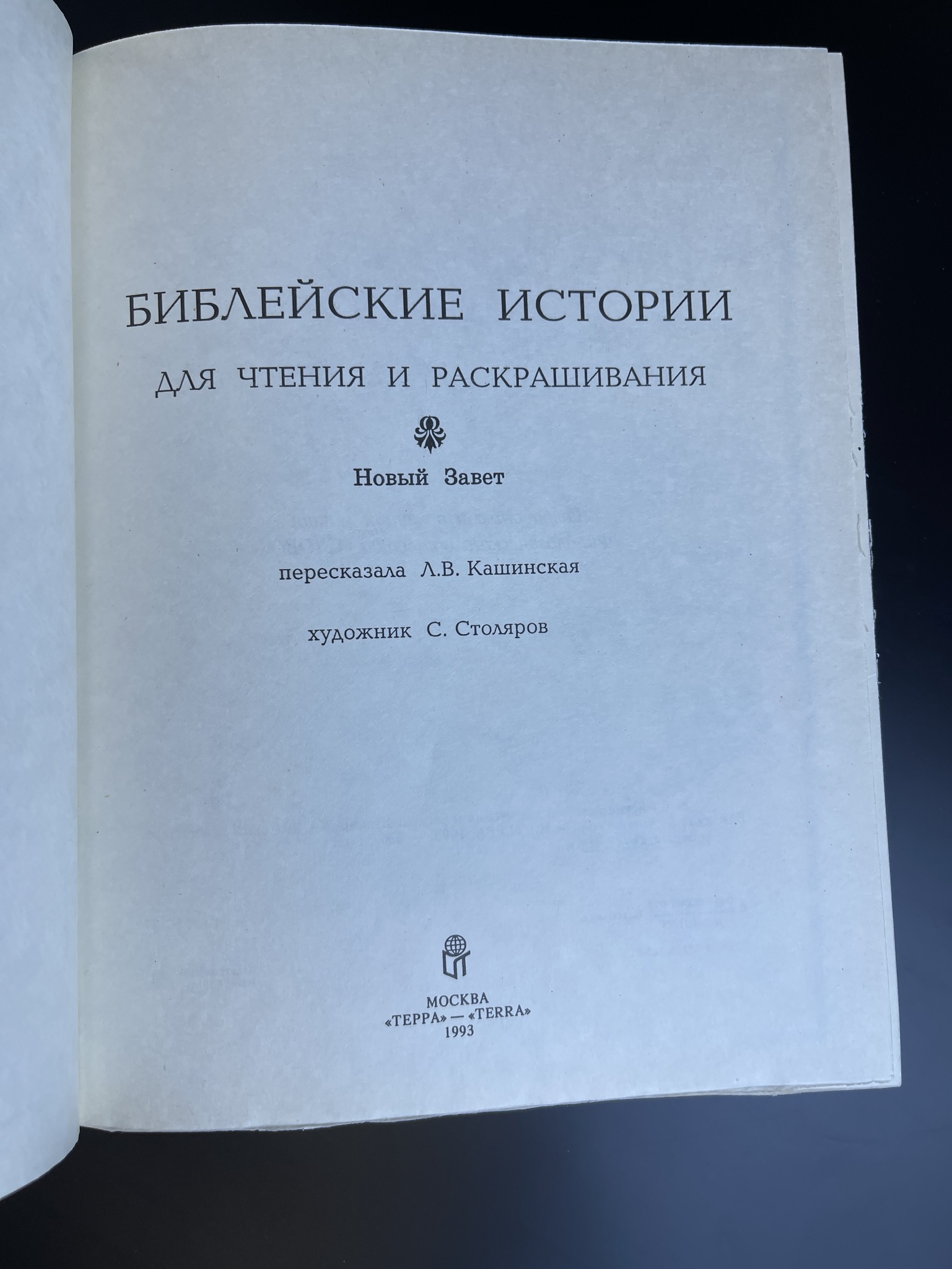 Книга Библейские истории для чтения и раскрашивания. Ветхий Завет. 1993 г.
