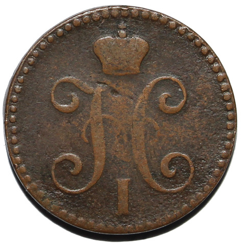 Аверс: вдоль края монеты ободок из точек, в центе вверху императорская корона, под ней большая буква «Н» - вензель Николая Первого, ниже римская цифра «I».
