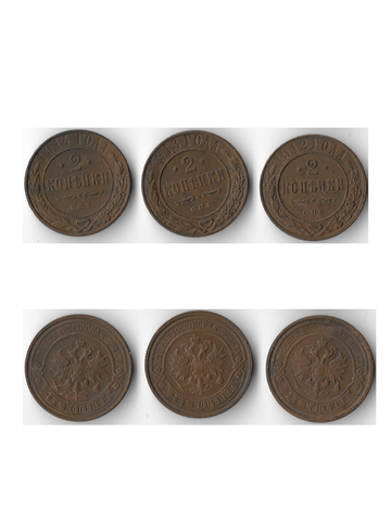 2 копейки 1912, 1913, 1914 года СПБ Николай II - 3 шт. (VF)