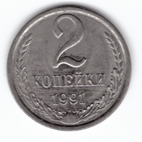 2 копейки 1991 год, Л, белый металл .