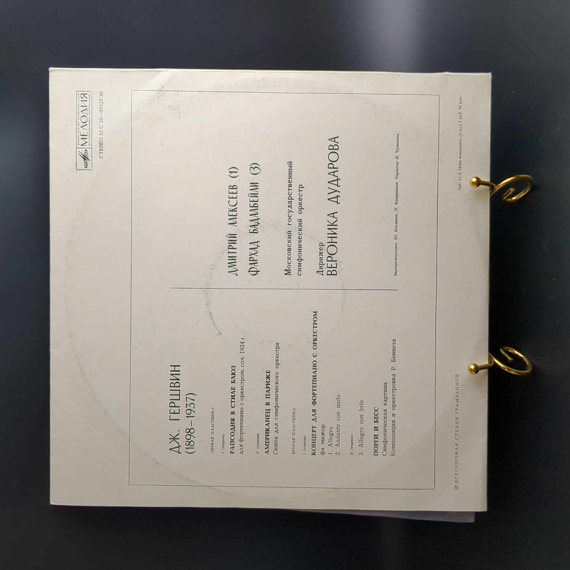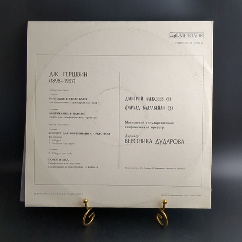 2 LP George Gershwin / Джордж Гершвин - Избранные Произведения. Виниловая пластинка 12 дюймов. Мелодия СССР. Рапсодия В Стиле Блюз для Фортепиано С Оркестром / Американец В Париже Сюита Для Симфоническог Оркестра, Концерт Фа Мажор Для Фортепиано С Оркестром и Порги И Бесс, Симфоническая Картина знаменитого американского композитора. Конверт VG- / Диски EX