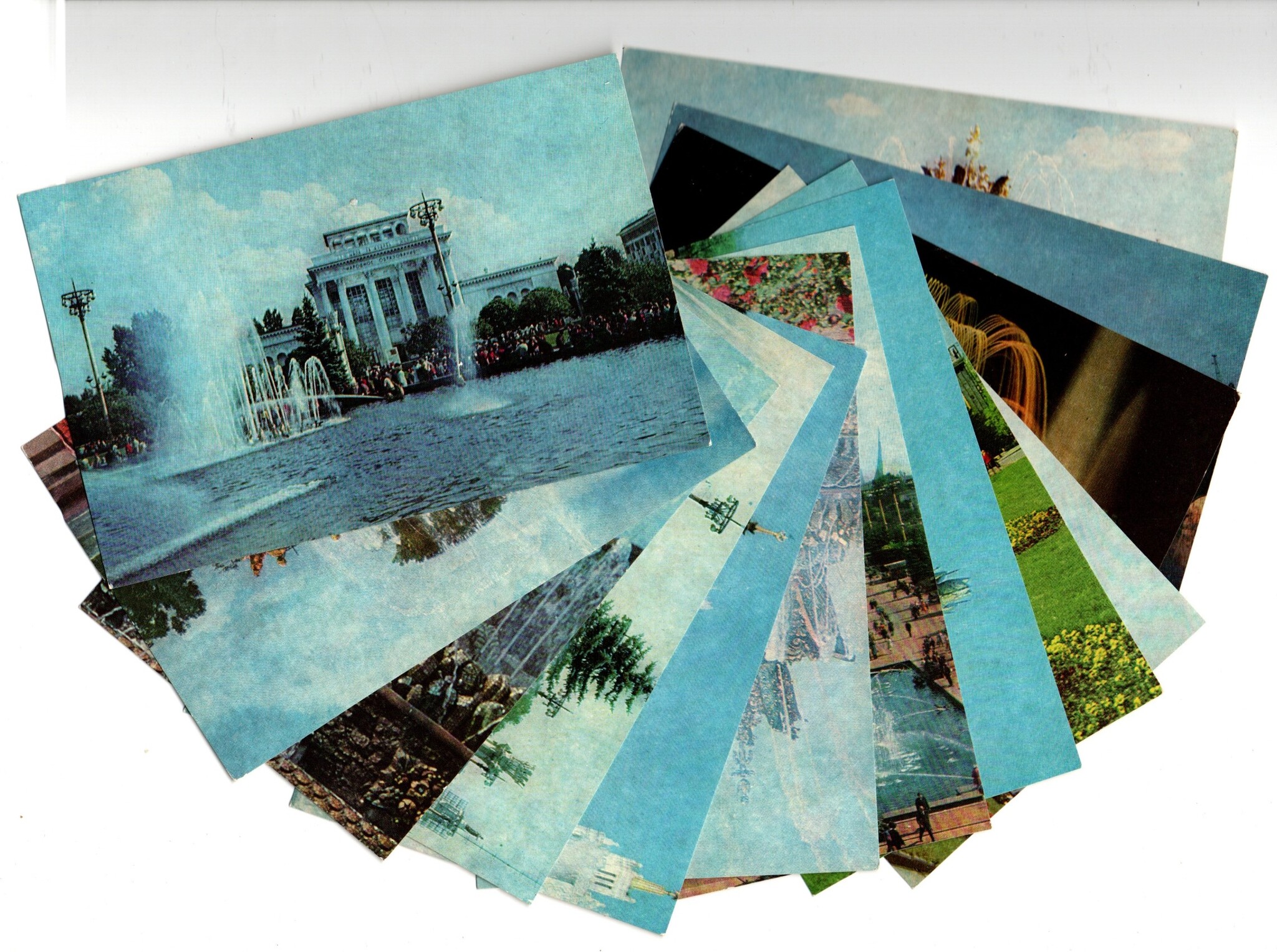 2 набора открыток - 28 штук - Тема Фонтаны ВДНХ Петродворец - СССР