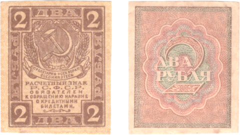 2 рубля 1919 г. Расчетный знак РСФСР