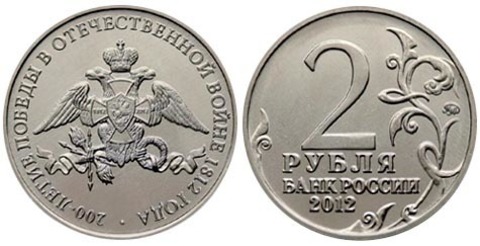 Монета выпущена в 2012 году в честь 200-летия победы в Отечественной Войне 1812 Центральным Банком РФ. Входит в серию монет под названием «200-летие победы России в Отечественной войне 1812 года». На реверсе изображена эмблема празднования 200-летия победы России в Отечественной войне 1812 года.
