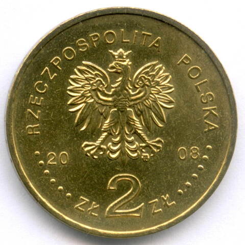 2 злотых 2008 год. Польша. 40 лет политическому кризису в Польше (Марш 1968 года). Латунь XF-AU