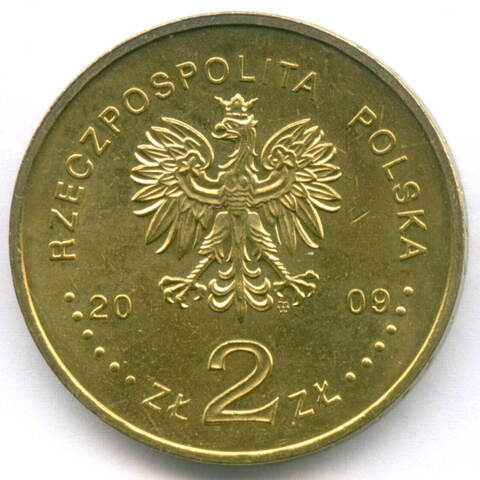 2 злотых 2009 год. Польша. 65 лет Варшавскому восстанию. Латунь XF-AU