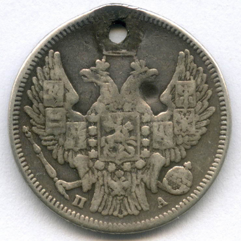 20 копеек 1847 год. СПБ-ПА. Отверстие
