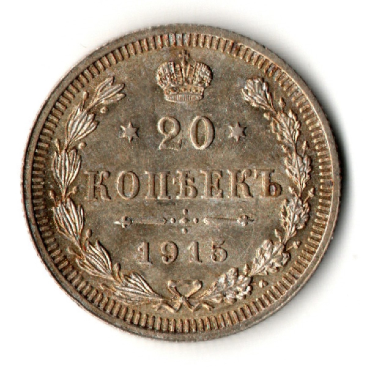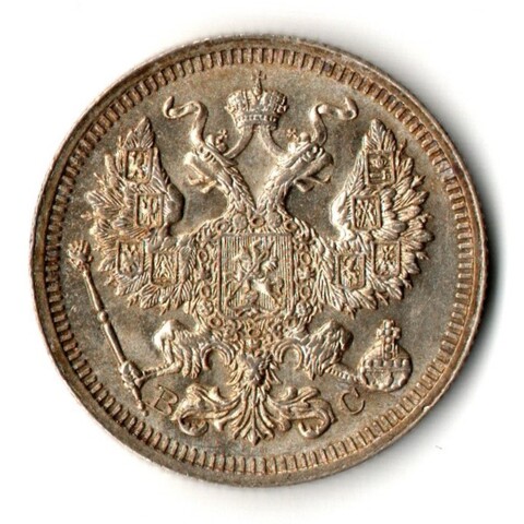 20 копеек 1915 год - ВС - Царская Россия - Николай II - штемпельный блеск