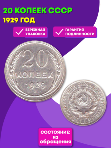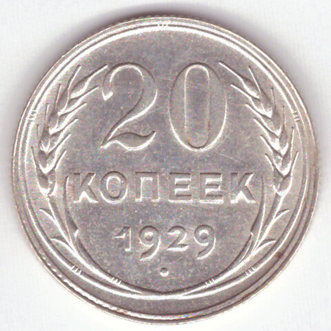 20 копеек 1929 год СССР XF