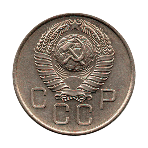20 копеек 1957 г. С блеском. Желудь ближе к канту, Мадагаскар есть, серп через центр UNC