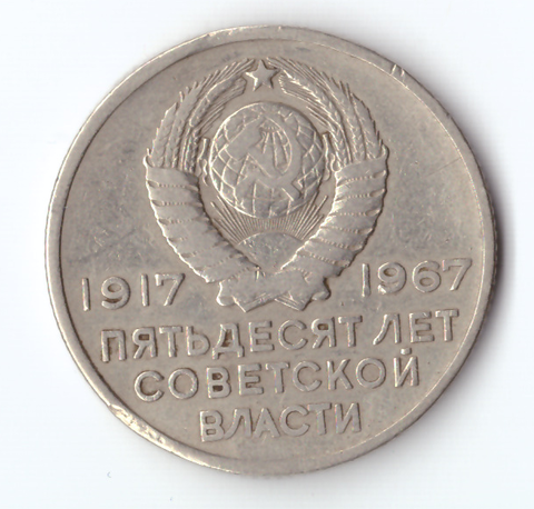 20 копеек 1967 года 50 лет Советской власти (немного гнутая) VF-