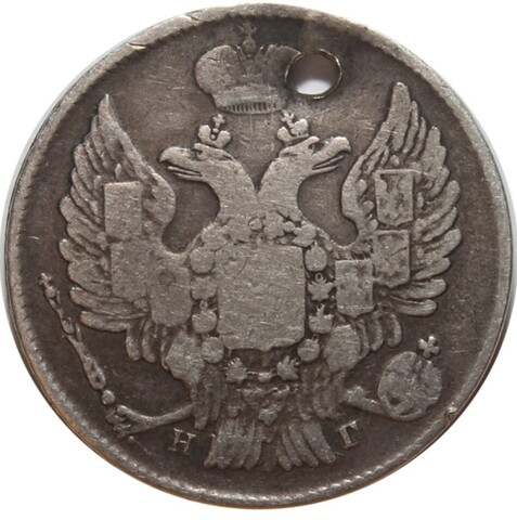20 копеек. Николай I. СПБ НГ. 1836 год. Отверстие