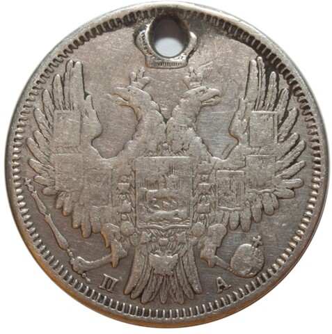 20 копеек. Николай I. СПБ ПА. 1851 год. Отверстие