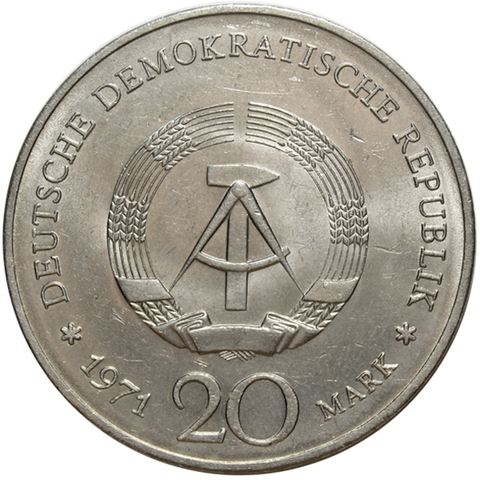 20 марок. 100 лет со дня рождения Генриха Манна. Германия-ГДР. Медноникель. 1971 год. AU
