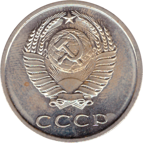 Аверс: Штемпель 1.1. зазоры между витками ленты узкие, справа от звезды наружная гребенка остей с уступом, герб СССР - 15 витков ленты.