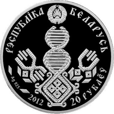 Аверс: вверху – рельефное изображение Государственного герба Республики Беларусь; в центре – изображение декоративной композиции – стилизованной молекулы ДНК (дезоксирибонуклеиновой кислоты) с Х(икс)- и У(игрек)-хромосомами по бокам, выполненной в стилистике соломоплетения; под ней указаны: слева – год чеканки (на серебряной – и проба сплава), справа – номинал: 20 РУБЛЁЎ (на серебряной) и 1 РУБЕЛЬ (на медно-никелевой); вверху по кругу надпись: РЭСПУБЛІКА БЕЛАРУСЬ.