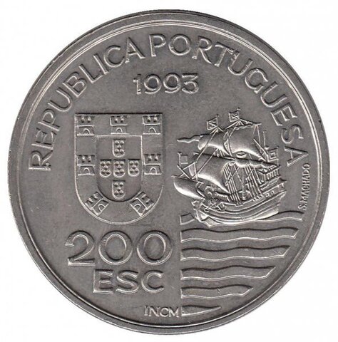 200 эскудо 1993 год "Посланники острова Кюсю. Парусник"