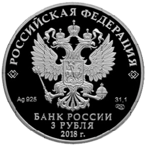 Аверс: На лицевой стороне монет расположено рельефное изображение Государственного герба Российской Федерации, имеются надписи: «РОССИЙСКАЯ ФЕДЕРАЦИЯ», «БАНК РОССИИ», номинал монет и дата, обозначение металла по Периодической системе элементов Д.И. Менделеева, проба сплава, товарный знак Московского монетного двора и масса драгоценного металла в чистоте.