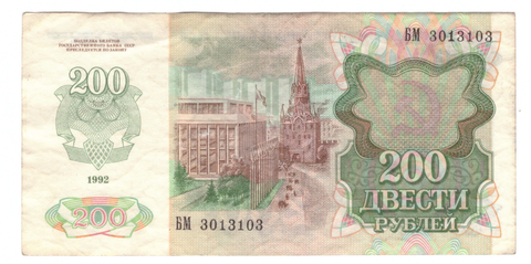 200 рублей 1992 года. Зеркальный номер (БМ 3013103). VF