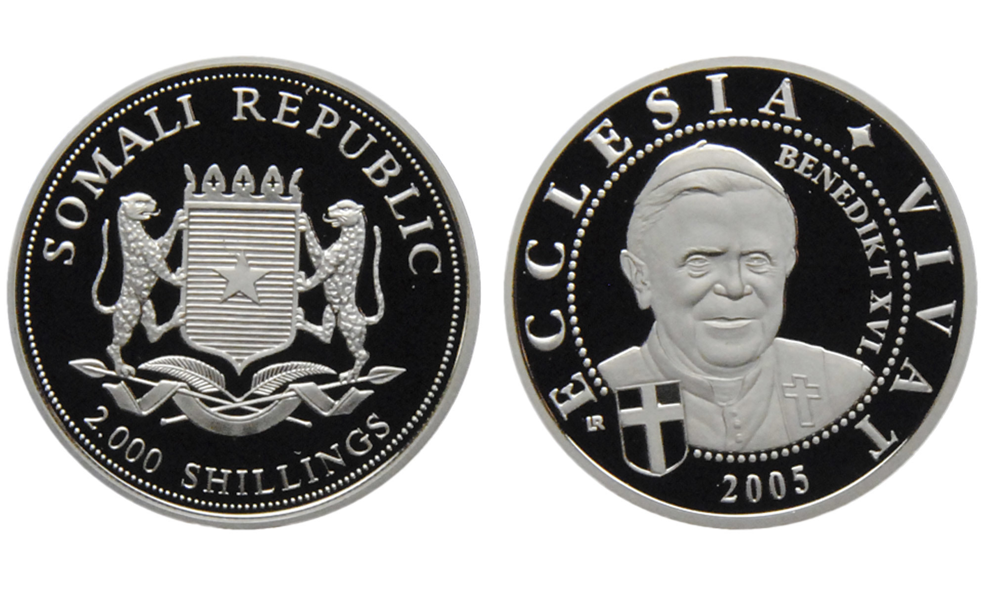2000 шиллингов. Папа Бенедикт XVI. 2005 г. Сомали. Proof