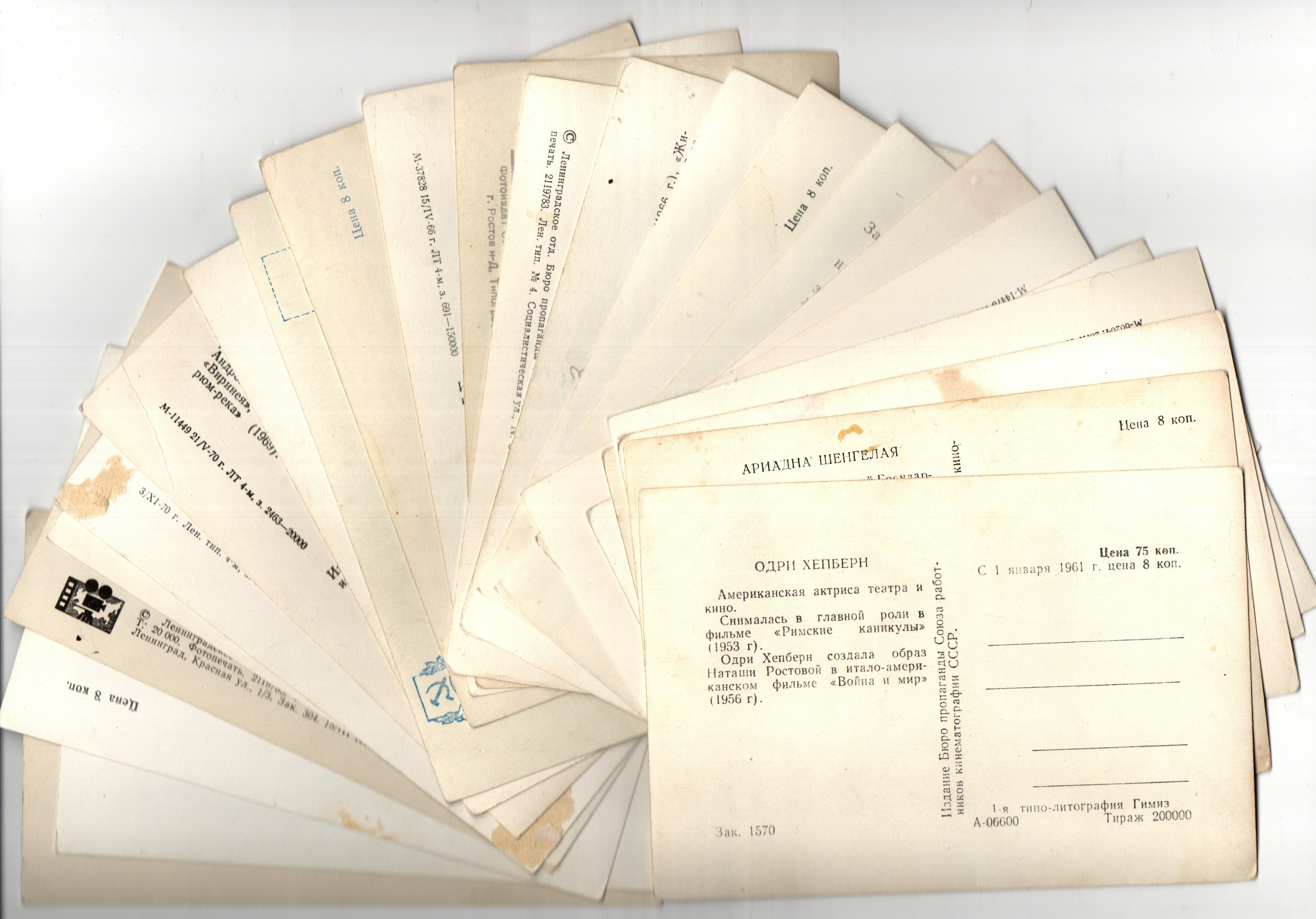 №22 Открытки Артисты и актёры СССР 1960–1970-е г. 25 штук. Чёрно-белые, чистые, без повторов