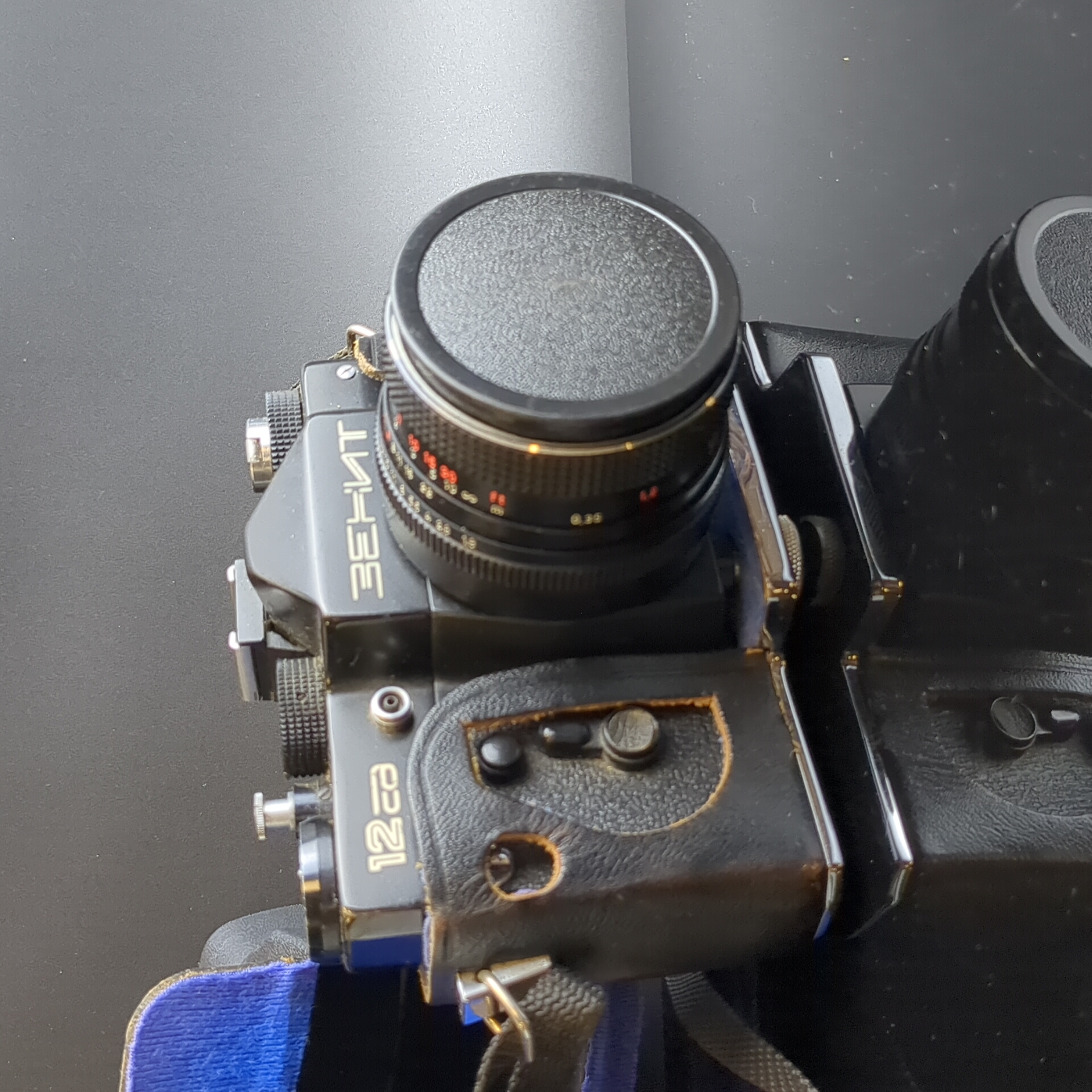 №23 Фотоаппарат Зенит 12 СД с объективом Pancolar 1,8/50 Carl Zeiss Jena. металл, стекло, кожа, пластик, Красногорский механический завод КМЗ. Присутствуют следы использования. Состояние на фото