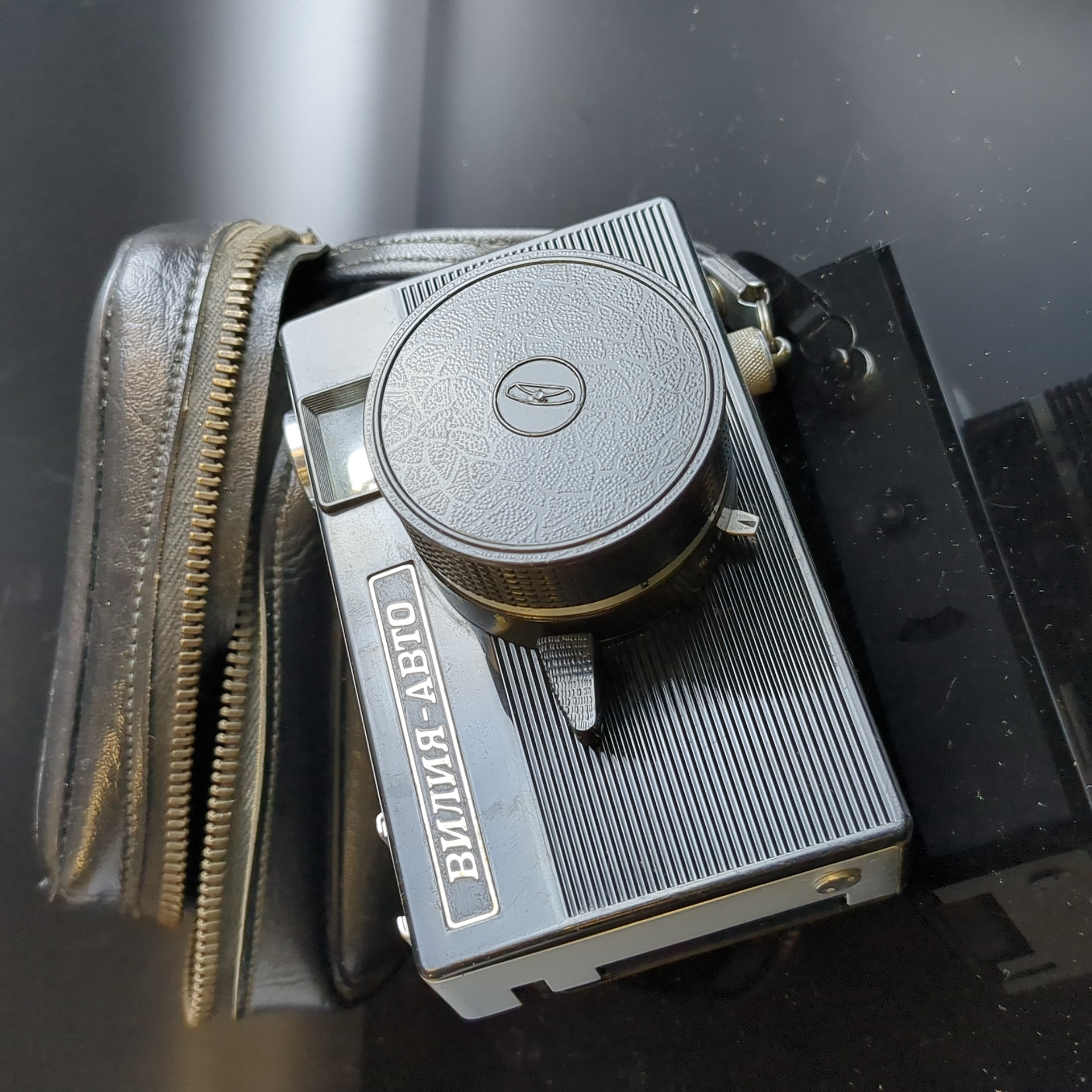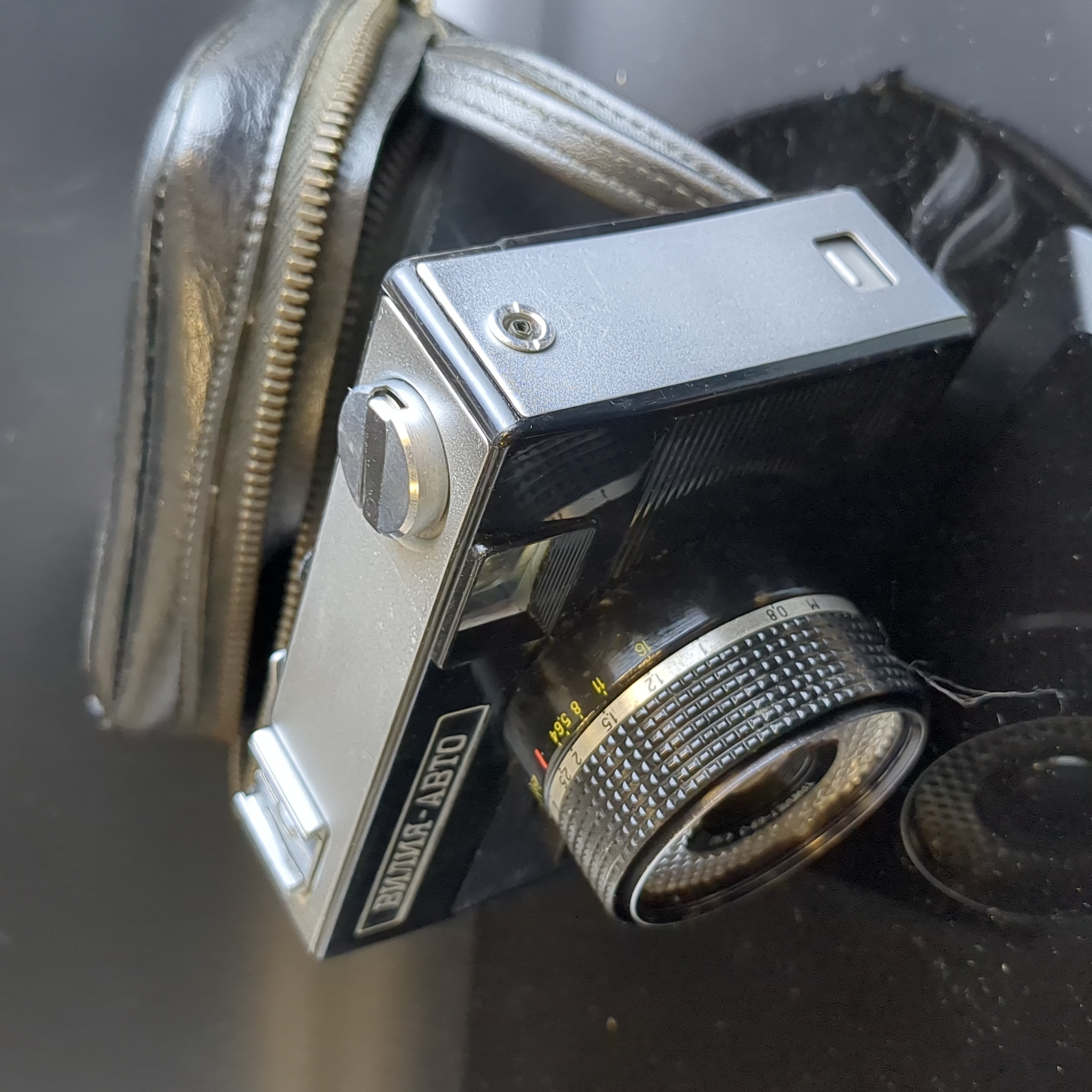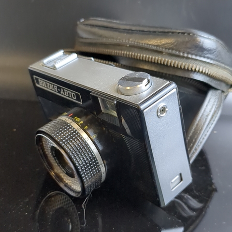№24 Фотоаппарат шкальный "Вилия-Авто", пластик, стекло, металл, Белорусское оптико-механическое объединение (БелОМО), СССР, 1973-1985 гг. Присутствуют следы использования. Состояние на фото