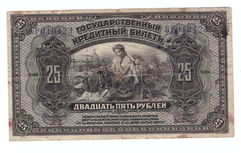 25 рублей 1918— Государственный Кредитный Билет.