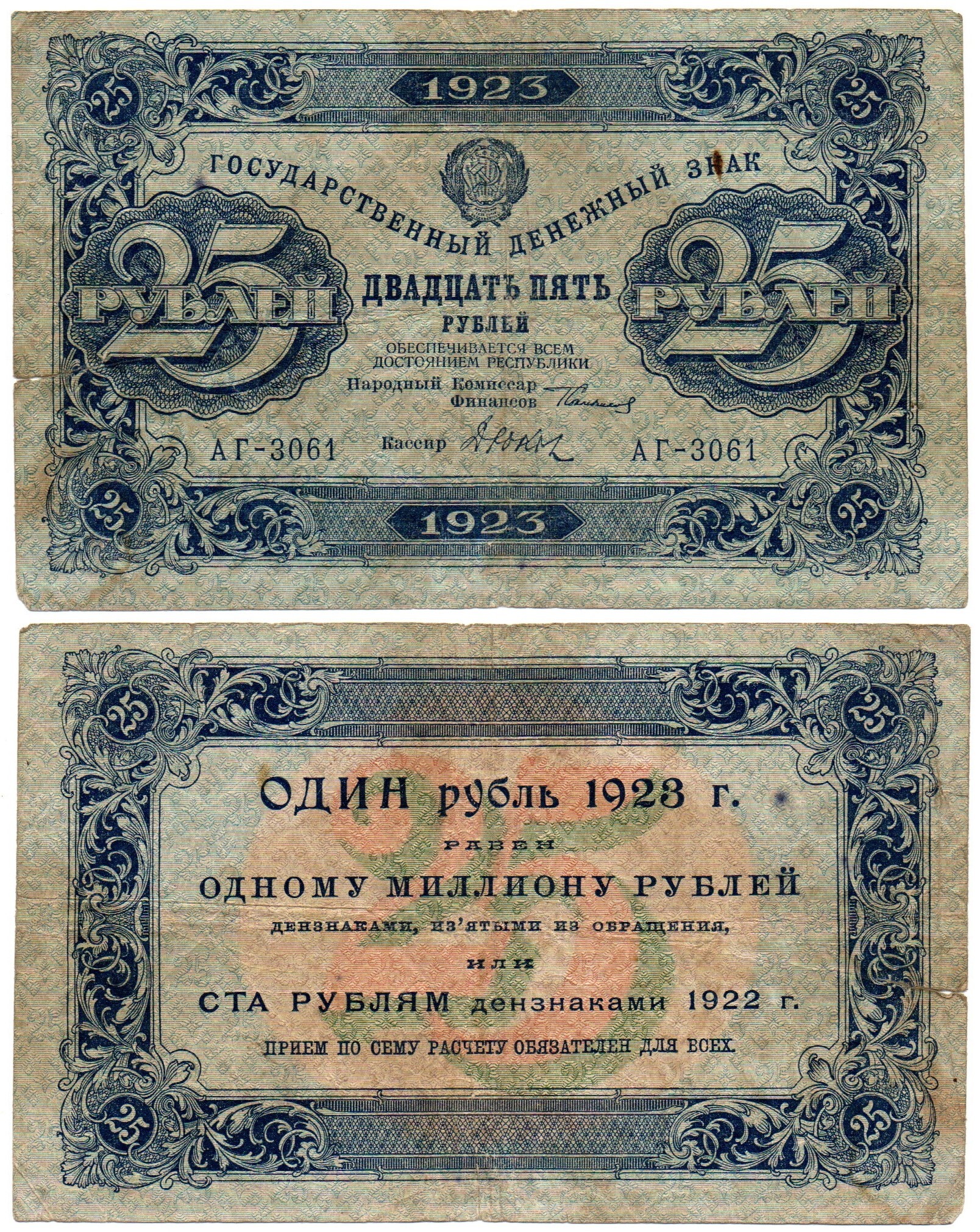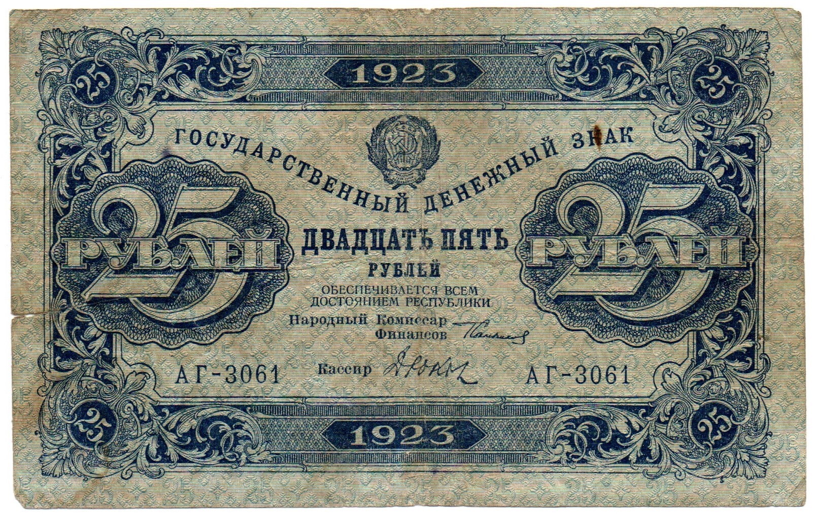 25 рублей 1923 год - Денежный знак - Серия АГ-3061 - РСФСР