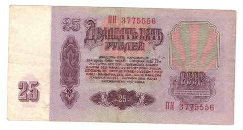 25 рублей 1961 года с красивым номером (ПН 3775556) F