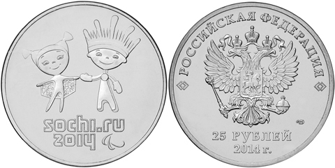 25 рублей 2014 г. Лучик и Снежинка. Олимпиада в СОЧИ 2014 г. UNC