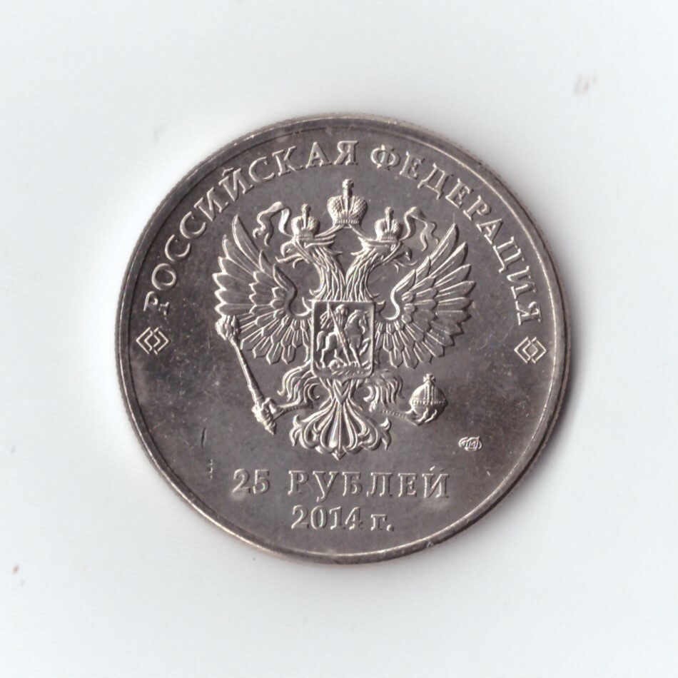 25 рублей 2014 г. Сочи. Олимпиада. Цветная. Мультяшная. UNC