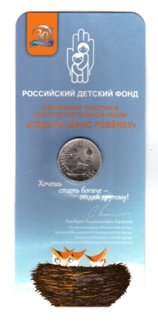 Монета имеет форму круга белого цвета диаметром 27,0 мм. На лицевой стороне монеты имеется выступающий кант по окружности. Боковая поверхность монеты рифленая.