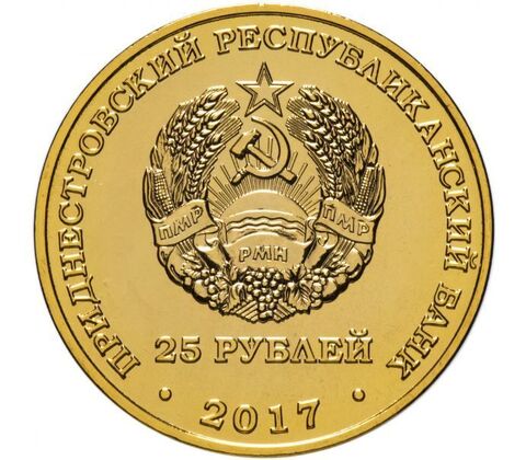Аверс: изображение Государственного герба Приднестровской Молдавской Республики. По кругу расположены надписи, разделенные точками: «ПРИДНЕСТРОВСКИЙ РЕСПУБЛИКАНСКИЙ БАНК», «2017». Под гербом указан номинал - «25 РУБЛЕЙ».