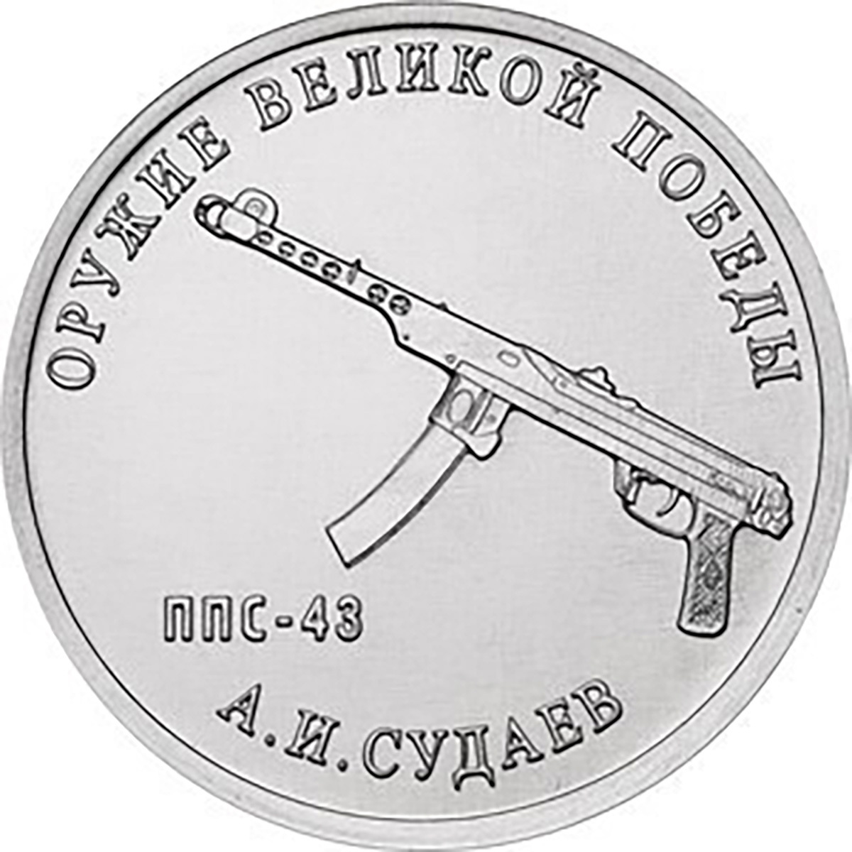 Реверс: «Конструктор оружия А.И. Судаев» (каталожный № 5015-0045)расположено рельефное изображение пистолета-пулемета Судаева, внизу слева — надпись: «ППС-43»; по окружности имеются надписи, вверху: «ОРУЖИЕ ВЕЛИКОЙ ПОБЕДЫ», внизу: «А.И. СУДАЕВ»
