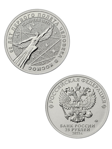 25 рублей «60-летие первого полета человека в космос» 2021 год. UNC