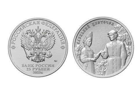 Монета 25 рублей 2023 года. Аленький цветочек - советский полнометражный мультипликационный фильм, созданный режиссером Львом Атамановым по одноименной сказке Сергея Аксакова о заколдованном юноше, обращенном в чудище, и о девушке, которая силой любви возвращает ему человеческий облик.