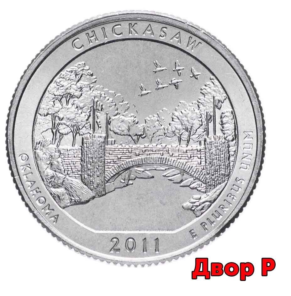 Монетка с названием «Национальная зона отдыха Чикасо» станет последним выпуском, датированным 2011-м годом в серии квотеров «Прекрасная Америка». Эта монета посвящена национальному парку Чикасо (Chickasaw National Recreation Area) в штате Оклахома и дизайн реверса монеты отображает один из известных видов парка.