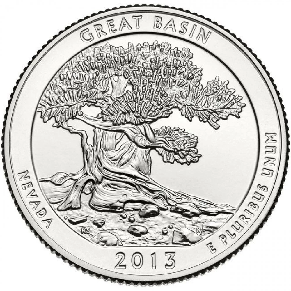 Монета Америки памятная 25 центов 18-й парк Национальный парк Грейт-Бейсин двор: D