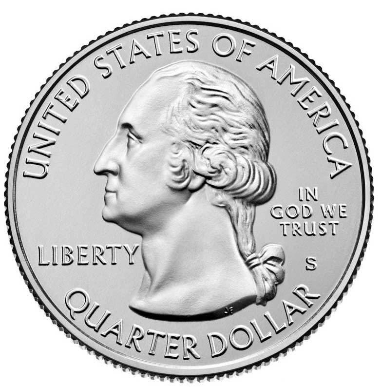 Аверс: В центре монеты изображён портрет президента Джорджа Вашингтона влево (показан в восстановленной версии оригинального портрета, используемого с 1932 году на монета-квотерах). Сверху полукругом название страны-эмитента: UNITED STATES OF AMERICA, внизу полукругом написан номинал монеты - QUARTER DOLLAR. Слева от портрета отчеканено слово LIBERTY (СВОБОДА), справа в несколько строк - IN GOD WE TRUST (МЫ ВЕРИМ В БОГА) и буква монетного двора.
