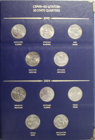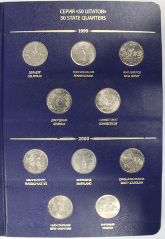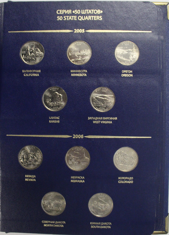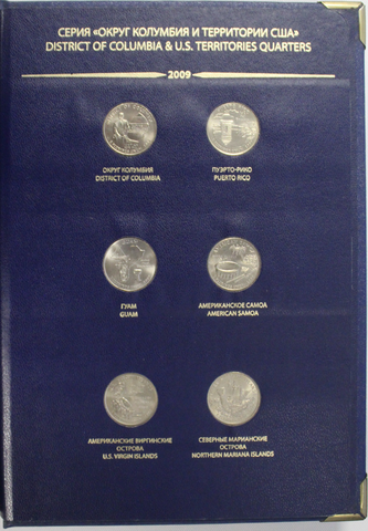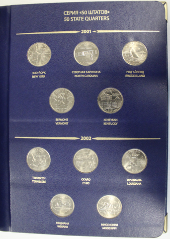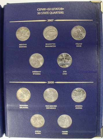 Заполненный альбом для коллекции монет США номиналом в 25 центов, серии «50 штатов», выпускавшихся с 1999 по 2008 год и монет серии «Округ Колумбия и территории США», выпущенных в 2009 году.
