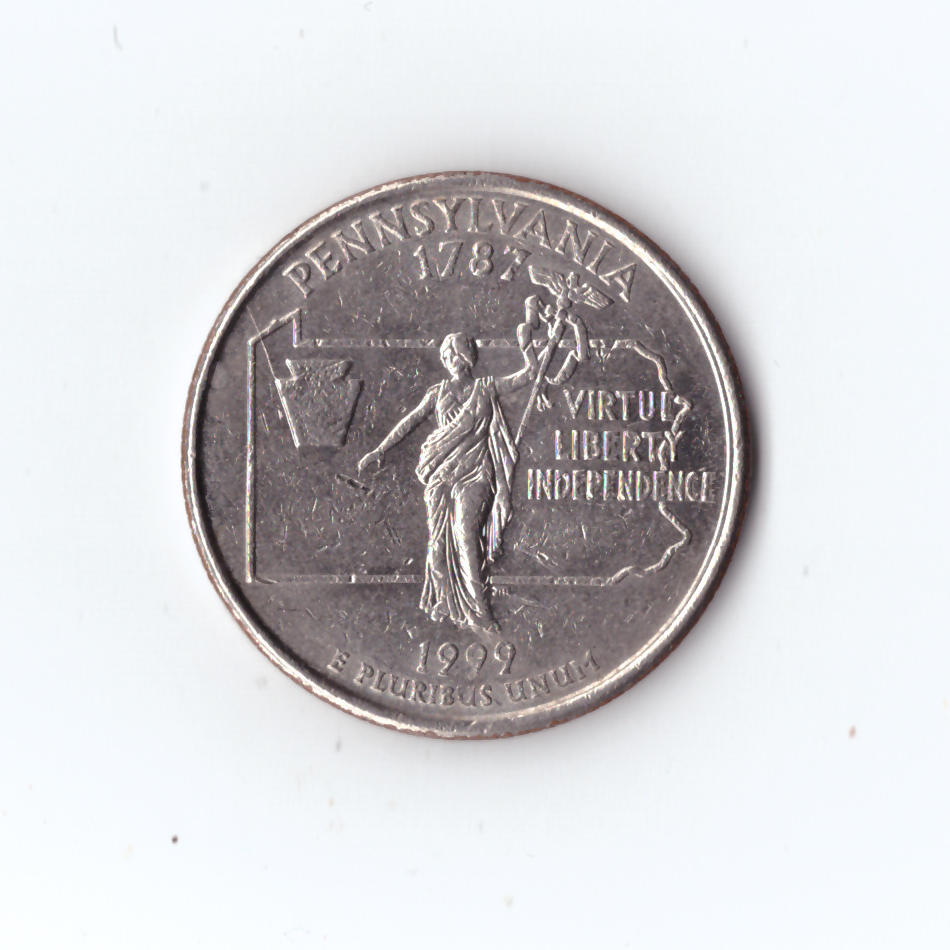 25 центов США 1999 год "Пенсильвания" , двор Р, XF-AU