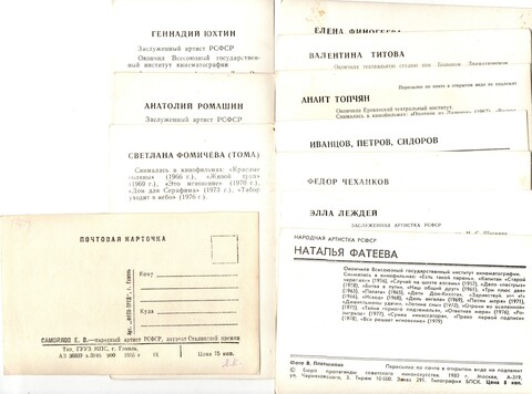№26 Открытки Артисты и актёры СССР 1960–1970-е г. 25 штук. Чёрно-белые, чистые, без повторов