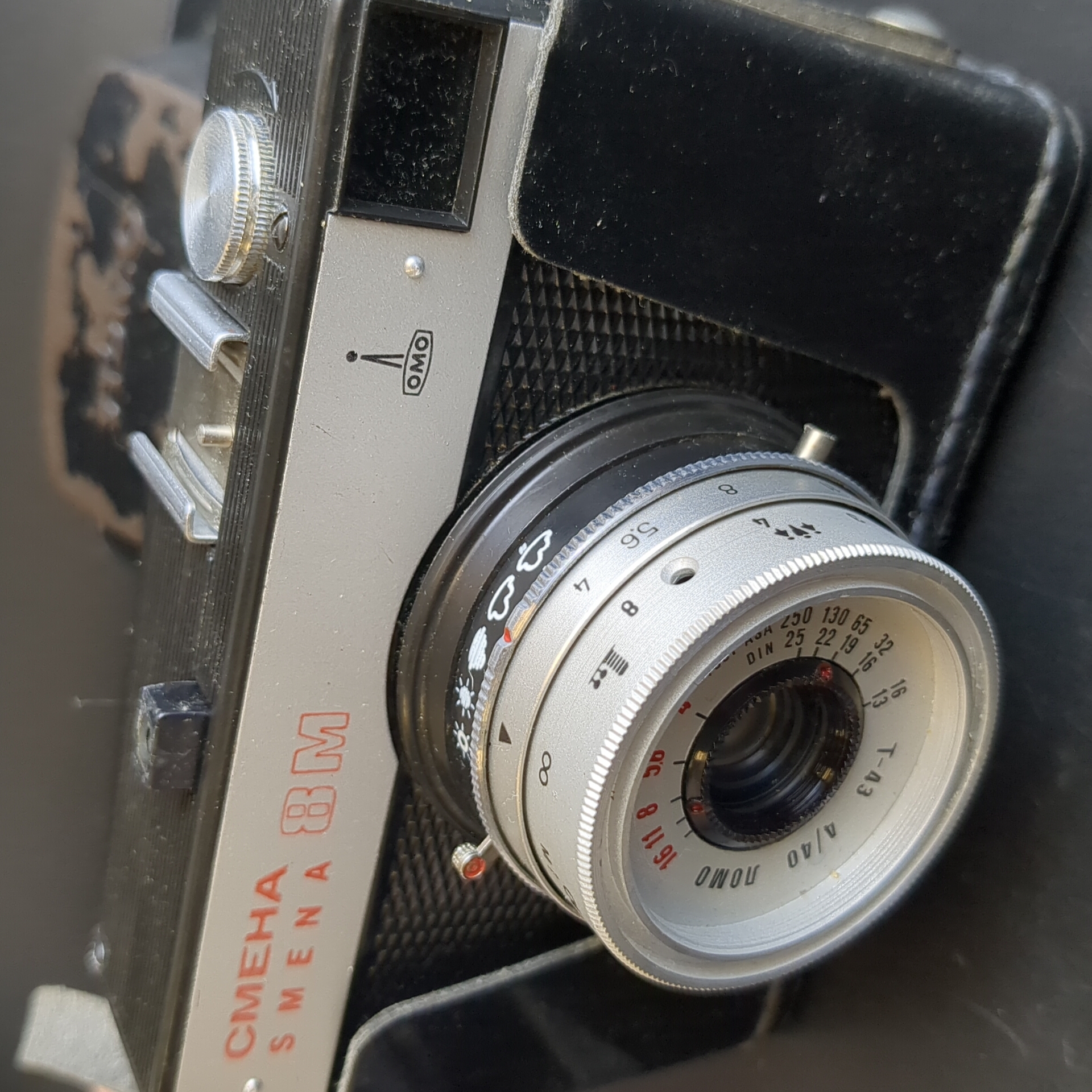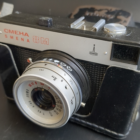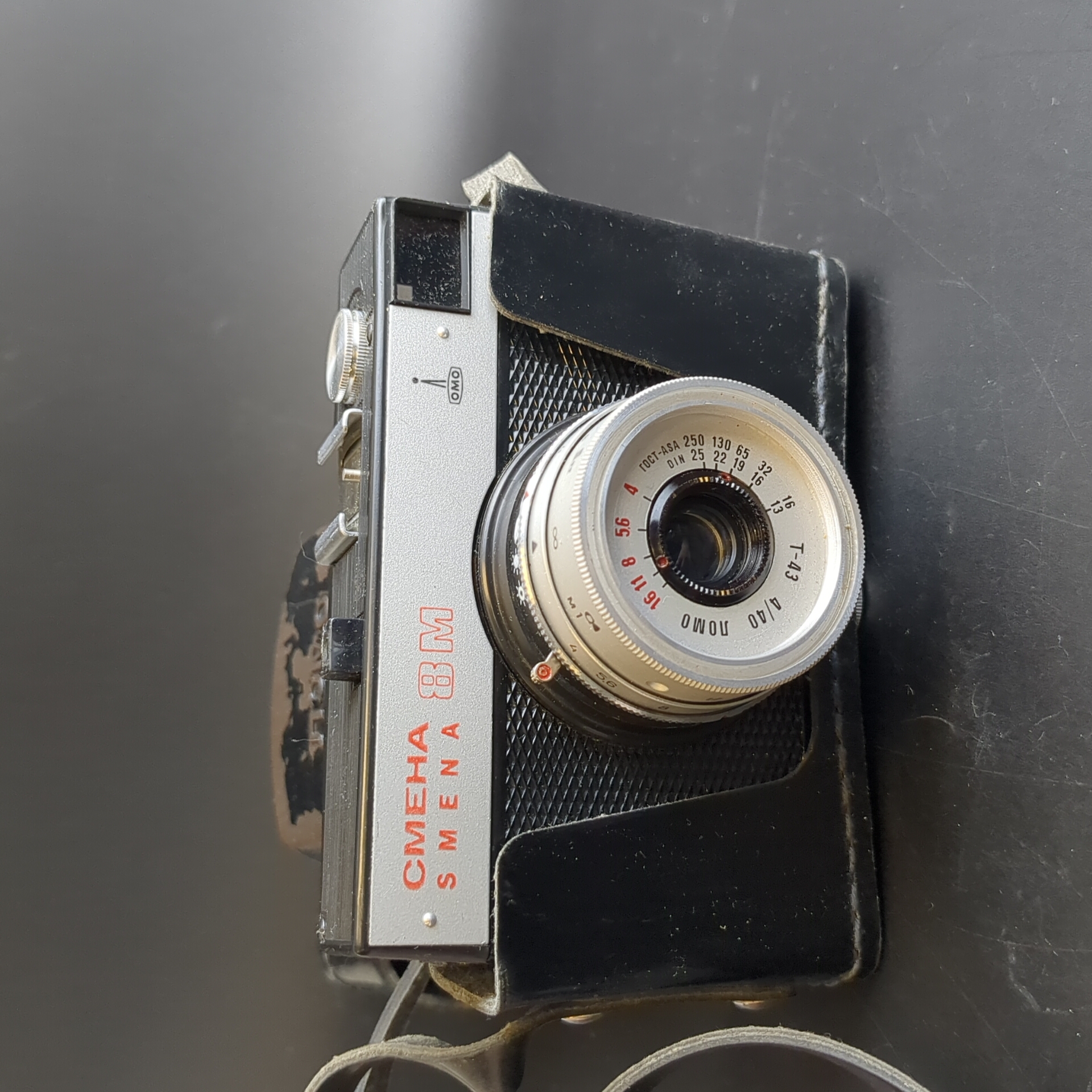 №27 Фотоаппарат "Смена 8М" в родном футляре , бакелит, Ленинградское оптико-механическое объединение, г. Ленинград, СССР, 1970-1990 гг.