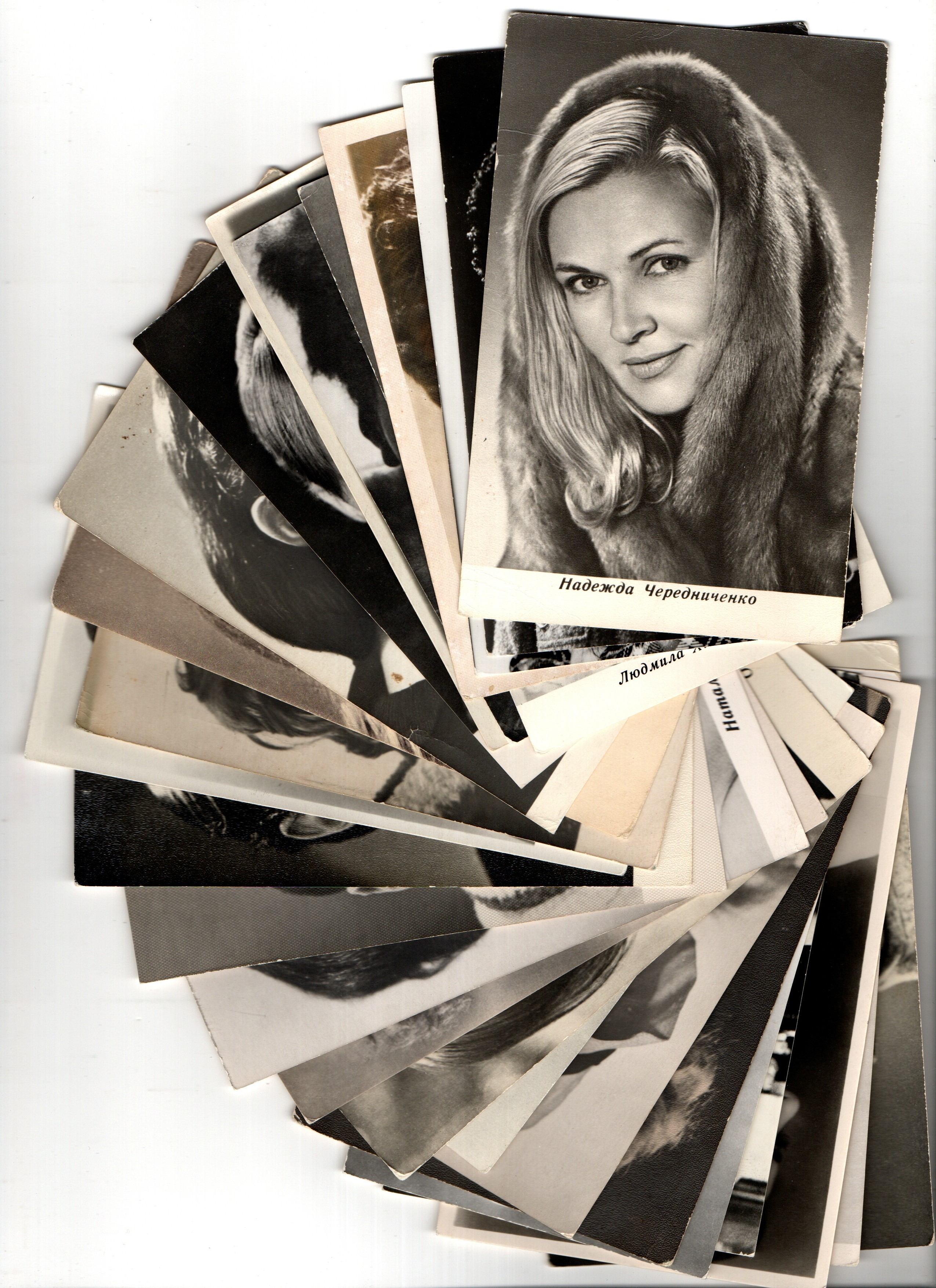 №27 Открытки Артисты и актёры СССР 1960–1970-е г. 25 штук. Чёрно-белые, чистые, без повторов